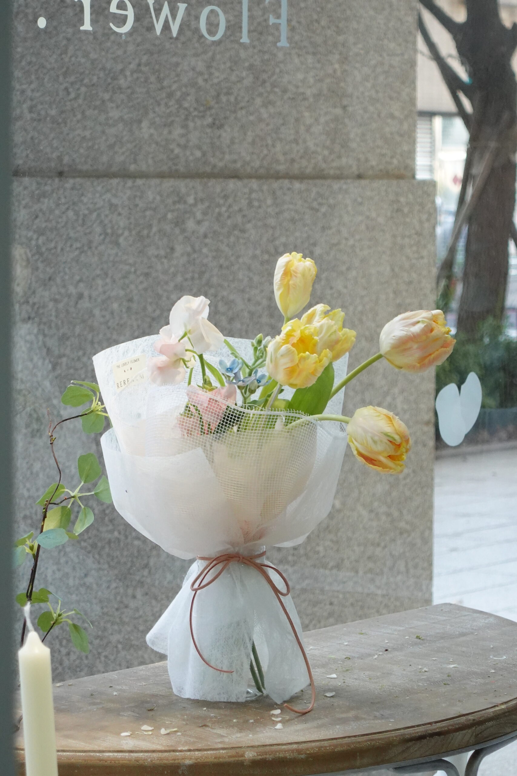 進口鬱金香、香豌豆、藍星花